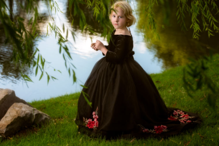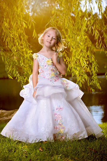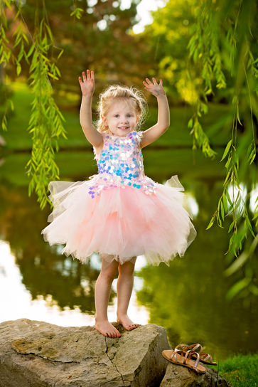 Whether you have a princess, a ballerina, or a spunky little girl, our client closet has you covered. Check out all the options we have available for your session! Click or hover over the picture to see a size and description.